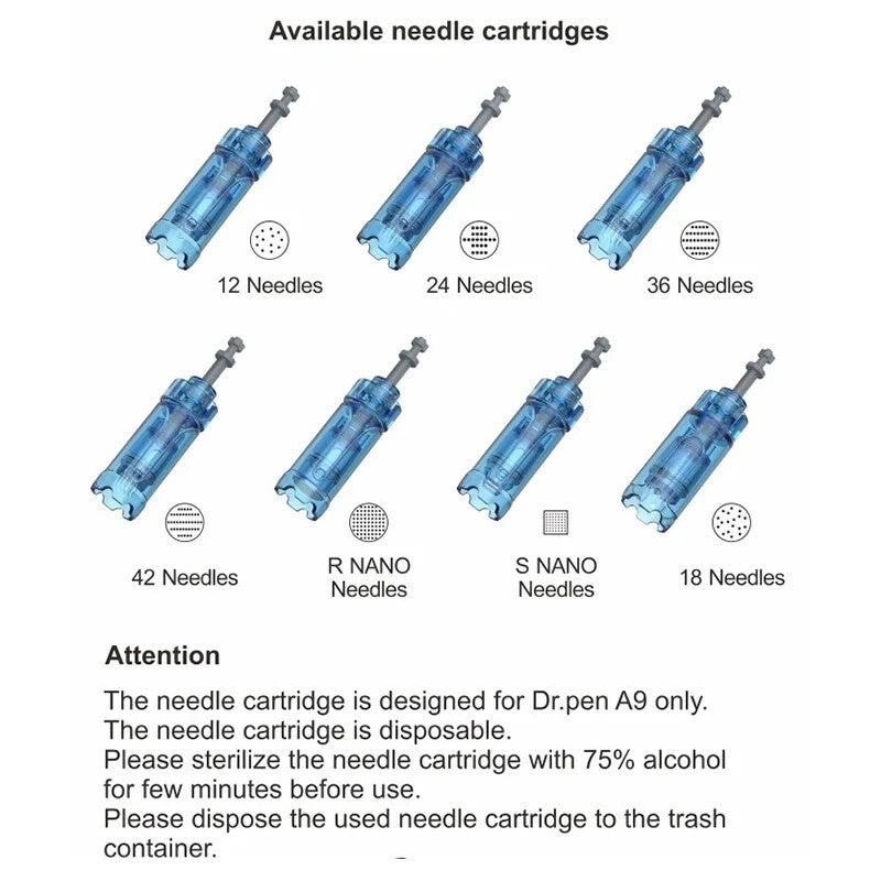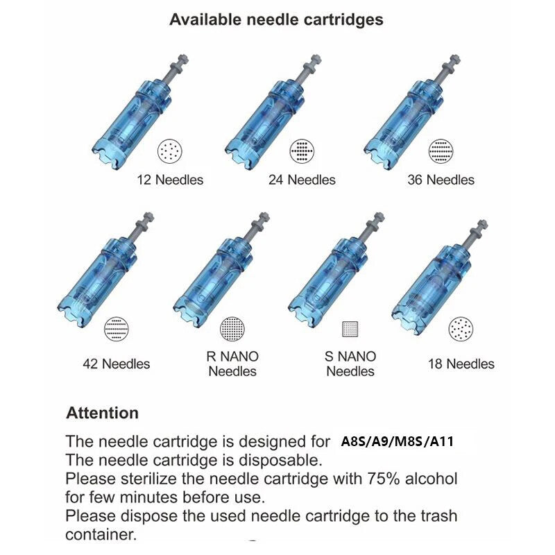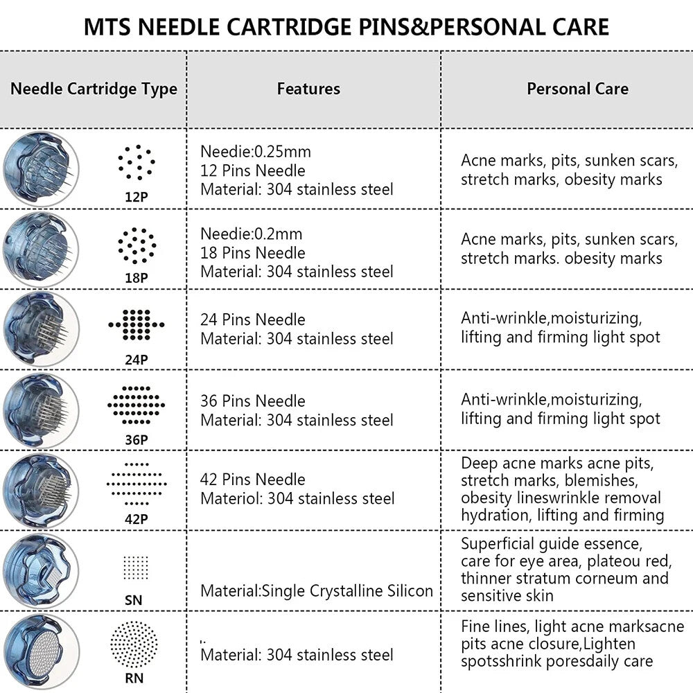 12 pins : Acne, Fine hairlines, Pits, Tattoos & Scars, Burn Scars, Surgery Scars, Deep Scars (abdomen, thighs, legs, breasts), Deep wrinkles, Stretch marks, Cellulite tissue, Connective, Age spots, Deep Spots,Anti-wrinkle,Anti-aging, Skin regeneration and etc.